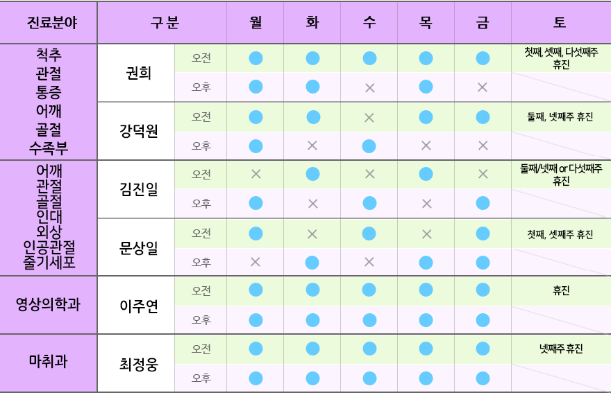 ※ 의료진의 진료일정은 상황에 따라 변경될 수 있습니다.